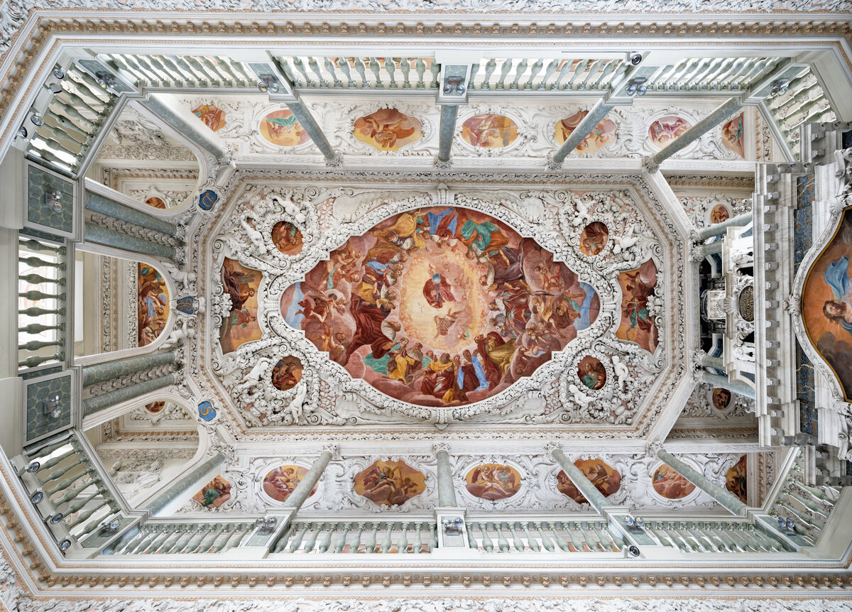 Für die dekorative Gestaltung des Treppenhauses, der herzoglichen Wohngemächer und der Schlosskapelle wurden italienische Künstler engagiert. Die Gestaltung des zweiläufigen Treppenhauses als zentralem Teil des barocken Schlosses übernahm der Stuckateur Giovanni Caroveri. Als eine Art Generalunternehmer für die Schlosskapelle „Zur Heiligen Dreifaltigkeit“ war der Stuckateur Bartolomeo Lucchese mit seiner Werkstatt beauftragt worden. Der Maler Carlo Ludoviko Castelli führte die Fresken in der Dreifaltigkeitskirche aus. Den Kanzelaltar errichtete der Erfurter Bildhauer Gottfried Gröninger. Das die Himmelfahrt Christi darstellende Altarbild schuf der Leiter der Nürnberger Malschule, Professor Johann Murrer. Die mainfränkischen Orgelbauer Jakob Theodor Berns und Johann Funsch bauten eine Orgel mit zwei Manualen, Pedal und insgesamt 16 Registern.
