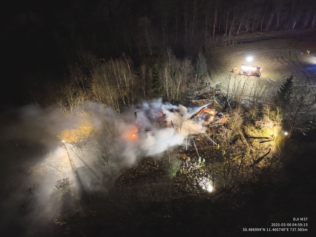 Lehesten. In der vergangenen Nacht kam es zum Brand eines leerstehenden Gebäudes im Oertelsbruch nahe Lehesten. Die Erstalarmierung erfolgte kurz nach Mitternacht, insgesamt waren rund 100 Einsatzkräfte im Einsatz, auch aus den Nachbarlandkreisen Saale-Orla und Kronach. Der Brand konnte noch in der Nacht gelöscht werden, derzeit finden Aufräumarbeiten des vollständig zerstörten Gebäudes statt.