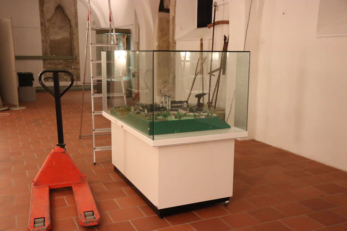 Ein besonderes Ausstellungsstück war das Modell des Saalfelder Benediktinerklosters St. Peter und Paul, das für die Saalfelder Ausstellung ja titelgebend war. Seit 2020 ist das Modell an prominenter Stelle im Saalfelder Schloss ausgestellt und damit am authentischen Ort.