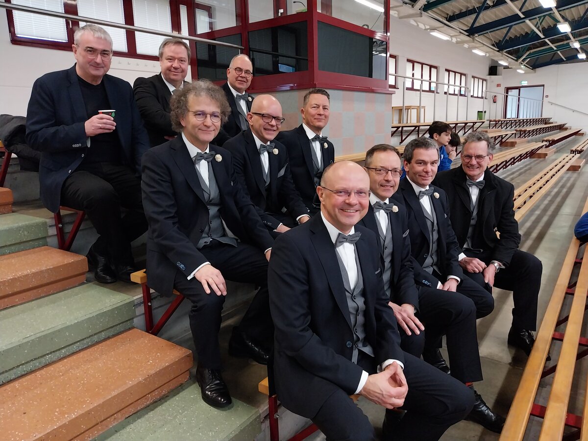 5 Die Saalfelder Vocalisten (mit Landrat Wolfram und Bürgermeister Dr. Kania) leiteten den Finaltag mit dem Singen der Nationalhymne ein