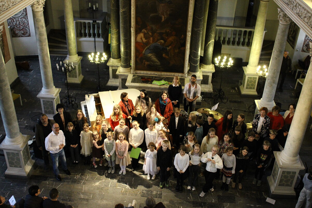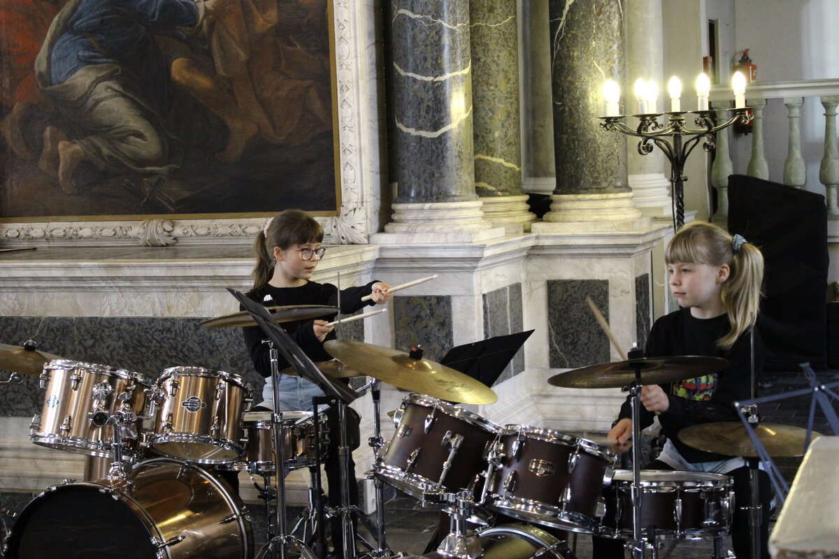„Auch wenn nicht alles perfekt war -die Vielfalt hat sehr beeindruckt“, so eine Zuhörermeinung. Die Jüngsten haben dabei nicht nur erfolgreich gegen ihre Aufregung angekämpft, sondern auch gegen die relativ kühlen Temperaturen in der Schlosskapelle, die das Spielen zusätzlich erschweren. Zu hören waren nicht nur Klavier und Trompete, Blockflöte oder Violoncello. Evgeniia Dubava spielte mit ihrer Querflöte „Over the Rainbow“. Und auch die sehr junge Harfenistin Marga Schrempf glänzte mit ihrem Instrument. Neben klassischer Musik zeigten die Schülerinnen und Schüler, dass sie auch Ohrwürmer wie „Pretty little Baby“, „Grennsleeves“ oder „Star Wars-Themen“ schon recht souverän beherrschen.